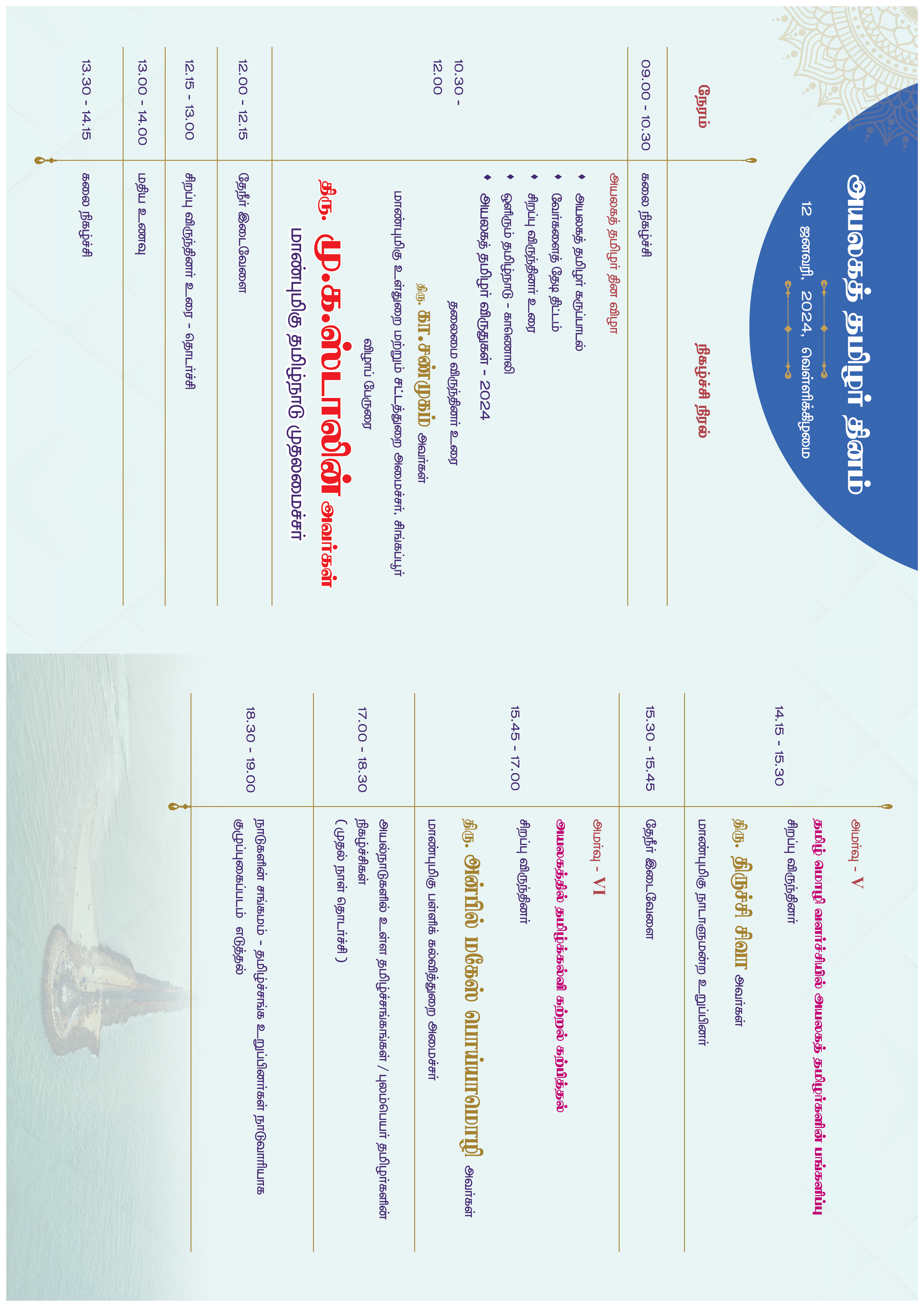 World Tamil Diaspora Day 2024 was celebrated with the theme ‘Tamizhvellum’ on 11.01.2024 and 12.01.2024 at Nandambakkam, Chennai Trade Centre, Chennai. In last year celebration, special guests participated only for one day.